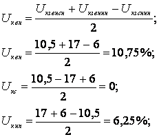 Напряжения к.з. соотв. по обмоткам высшего, среднего и низшего напр.: