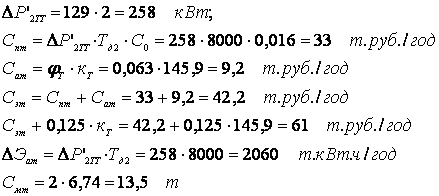 Потери мощности в двух трансформаторах ГПП: