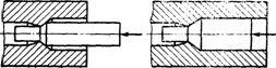 Редуцирование представляет операцию заталкивания заготовки в редуцирующую матрицу (рис. 4, а), сопровождающуюся уменьшением диаметра стержня соответственно диаметру редуцирующего пояска (без осадки заготовки). Качество процесса редуцирования