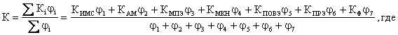 Φ1 … φ7 – функции, нормирующие весовую значимость базовых показателей.