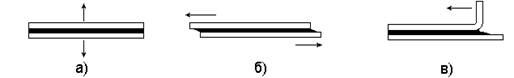 Вид клеевого соединения ыбирается так, чтобы возникали в нем в основном сдвигающие нагрузки, а остальные виды нагрузок были минимальными (рис.1).