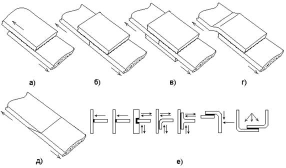 Рис.2. Виды клеевых соединений с рекомендуемым действием нагрузок (указаны стрелкой):