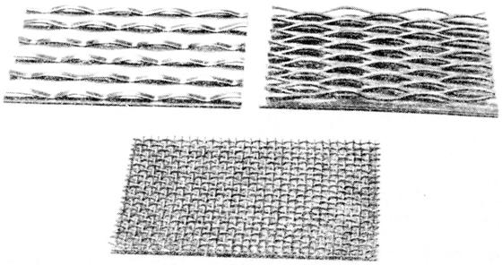 Толщина покрытий, армированных гофрированными полоска ми, доходит до 76.2 мм. Обычно металлические полосы получаются прокаткой проволоки или нарезаются из фольги. Этим полосам придают почти полусинусоидальную форму. Гофрированная полоса имеет короткие плоские участки между гребнями для упрощения ее крепления с металлической основой посредством точечной сварки. Применяются полосы толщиной 0,25—0,5 мм, шириной около 3 мм и различной длины. Высота гребня изменяется в соответствии с толщиной покрытия, необходимой в каждом конкретном случае, а расстояние между ними составляет 4,0, 7,9 и 12,7 мм. Гофрированные полоски можно делать из всякого сваривающегося металла. Кроме малоуглеродистой и нержавеющей стали в этих целях исследовались тугоплавкие металлы (молибден, тантал, ниобий и вольфрам).