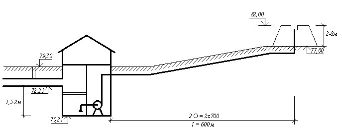 Нг – геодезическая высота подъёма сточных вод равная разности отметок уровня воды в приёмной камере очистных сооружений и дна приёмного резервуара или отметки среднего уровня сточных вод в приёмном резервуаре.