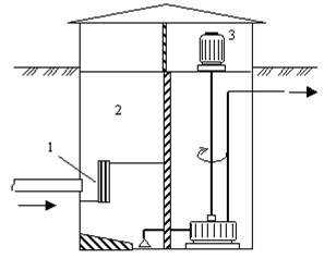 1 – решётки; 2 – приёмный резервуар; 3 – машинное отделение.
