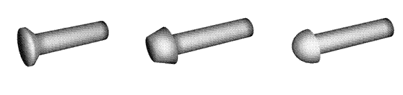 По форме головок различают: заклепки с полукруглой высокой головкой (рис.1) с диаметром стержня от 2 до 36 мм и длинной от 2 до 180 мм; закле- пки с полукруглой низкой головкой (рис 2) с диаметром стержня от 2 до10мм и длинной от 4 до 50 мм; заклепки с плоской головкой (рис3) со стержнем диаметром от 2 до 36 мм и длинной от 4 до 180мм; заклепки с потайной головкой (рис 4) со стержнем диаметром от 1 до 36 мм и длинной от 3 до 210 мм.