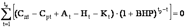 Для анализа эффективности единовременных затрат на разработку и внедрение системы используется показатель внутренней нормы рентабельности (ВНР), определяемый из соотношения: