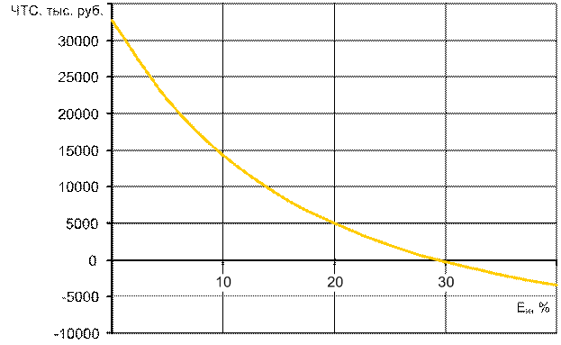 Рис. 4.2. График зависимости ЧТС от рентабельности проекта