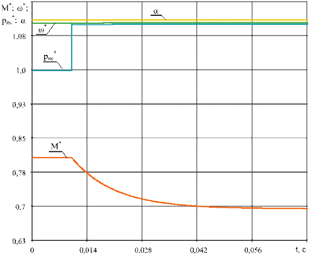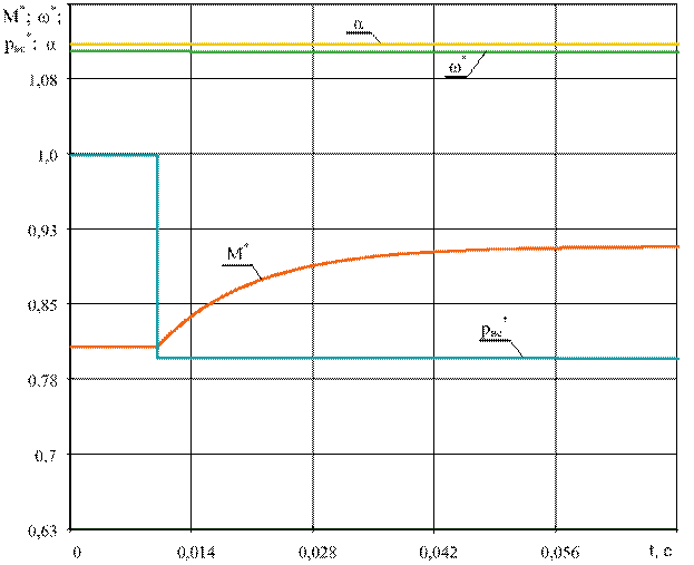 Рис. 2.3. Графики динамических процессов разомкнутой системы управления электропривода при повышении давления на нагнетании НПС