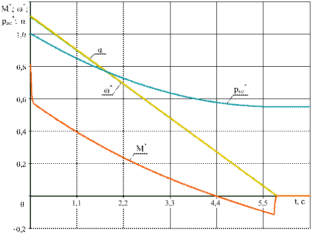 Рис. 2.4. Графики динамических процессов разомкнутой системы управления электропривода при плавном останове магистрального насосного агрегата
