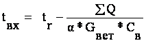 1) Определяем температуру входа воды в нагревательный прибор по формуле