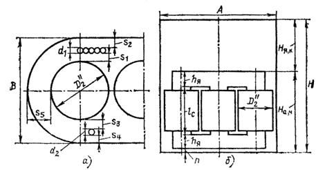 – диаметр изолированного отвода обмотки ВН: при классах напряжения 10 и 35 кВ при мощности трансформатора до 10000 кВ∙А