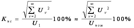 Несинусоидальность напряжения сети характеризуется коэффициентом несинусоидальности (искажения) кривой напряжения, который определяется по формуле: