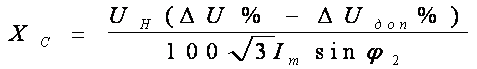 Величина XC выбирается в зависимости от потери напряжения без УПК DU%, допустимой потери напряжения DUдоп%, номинального напряжения Uн, тока нагрузки Im и sinj2