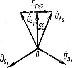 Тогда вектор добавочного напряжения Ерег будет перпендикулярен вектору фазного напряжения UA1, а вектор напряжения на выходе регулятора UA2 ,будет сдвинут на угол a, по отношению к вектору UA1. При этом угол a может быть как опережающим, так и отстающим.