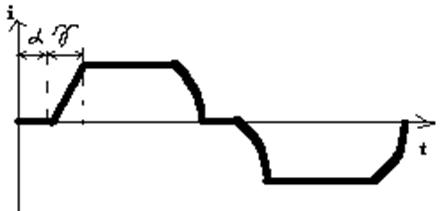 Форма кривой зависит от угла управления a, задаваемого системой импульсно-фазового управления, и угла коммутации g.
