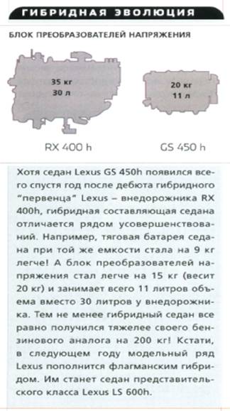И, наконец, последний вопрос: "Почему GS 450h, в отличие от других гибридов, стоит более чем на $2000 дешевле традиционной бензиновой версии GS 430?" В российском представительстве Toyota Motor объясняют все просто: на GS 430 устанавливается более дорогой и мощный мотор V8 объемом 4,3 л. И тем не менее мне показалось, что в данном случае цены определяются отнюдь не себестоимостью моделей. Похоже, японцы пошли на хитрый шаг, искусственно занизив цены на гибрид GS 450h. Встав перед альтернативой, покупатели наверняка предпочтут бензоэлектрическую машину обычной бензиновой. А потом гибрид им понравится настолько, что они будут рекомендовать его друзьям и уж точно не пересядут с него на обычную машину. А значит, следующей машиной клиента снова будет гибрид, и скорее всего - опять Lexus. Ведь Toyota уже застолбила за собой эту нишу.