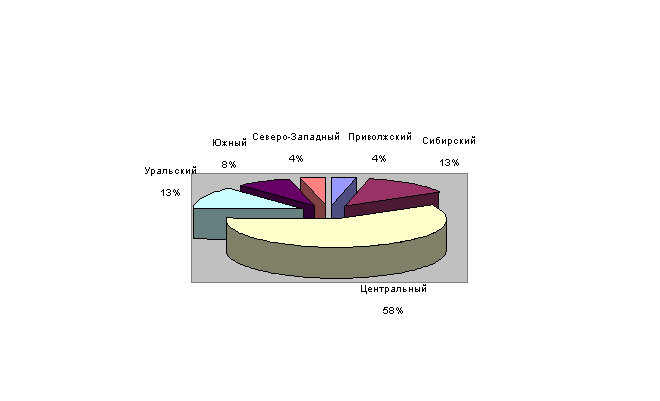 На рис.1.1 показана доля основных федеральных округов – производителей молочных консервов за 2003 год.