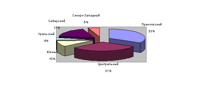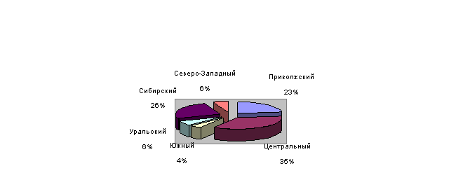 На рис.1.3 представлена доля основных федеральных округов – производителей СОМ в 2003 г.