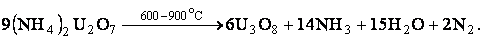 При более высоких температурах термическая диссоциация диураната аммония сопряжена с образованием закиси-окиси урана по реакции: