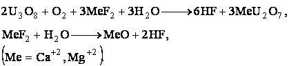 Так же, как и при прокаливании диураната аммония, примеси в большинстве своем концентрируются в оксидах урана. Количественно удаляются лишь вода, кислород и азот в результате сорбированного из азотнокислого раствора иона NO3-.