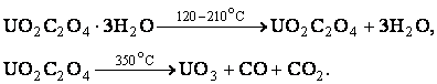 Оксиды урана могут быть получены при термической диссоциации оксалата уранила, который в интервале температур 120 – 210°С теряет свою кристаллизационную воду. При дальнейшем повышении температуры до