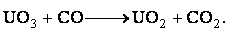 При соблюдении некоторых условий вместо получения закиси-окиси в результате диссоциации аммиака 2NH3 ® N2 + 3H2 возможно и более глубокое восстановление урана до UO2+x, для чего достаточно трети аммиака, имеющегося в диуранате аммония. Полноте реакции способствует предварительное удаление влаги из соли, циркуляция газов из печи с их возвратом после удаления влаги, температура 750 – 800°С.