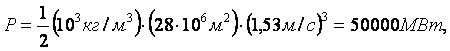 где р – плотность воды, g – ускорение силы тяжести, S – площадь приливного бассейна, R – разность уровней при приливе.