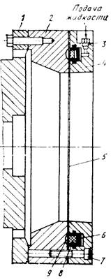 На некоторых моделях машин, например «Алмаз-бМ», натяг диска обеспечивается закачкой жидкости (например глицерина) в полость между зажимными кольцами (рис. 6).