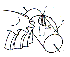 Существуют червячные однозубые фрезы-летучки (рис.4). Фреза-летучка имеет один режущий зуб, выполненный по профилю рейки и вставленный в оправку. Фреза очень проста в изготовлении, но малопроизводительна, и поэтому ее применяют только в случаях крайней необходимости, когда требуется нарезать одно или несколько червячных колес, а обычную червячную фрезу изготовить сложно.