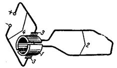 1— медные пластины; 2 — виток обмотки якоря; 3 — щетки; 4 — внешняя электрическая цепь