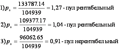 Подставляем полученные результаты в неравенство и рассчитываем для трех вариантов распределения доходов из пула: