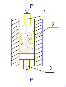 1-верхний пуансон,2-матрица,3-нижний пуансон.