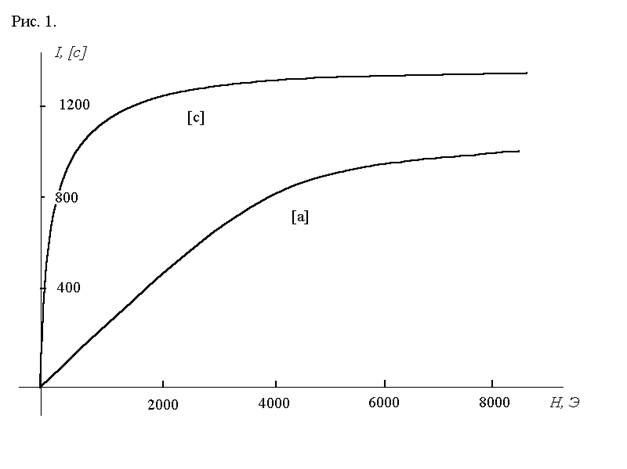 Рис.1. Кривые намагничивания I(Н) монокристалла кобальта, снятые