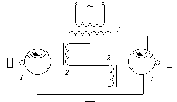 Рис. 1. Схема безвыпрямительного питания магнетронов с последовательными электромагнитами от сети переменного тока промышленной частоты:
