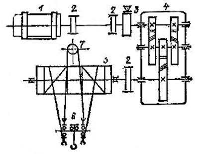 Типичная кинематическая схема механизма подъема крана приведена на рисунке 4.2