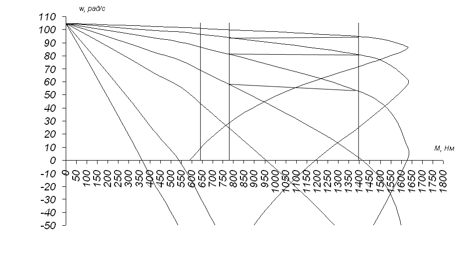 На рисунке 8 находим установившиеся и начальные значения скоростей на каждой пусковой характеристике.