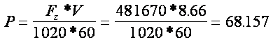 Fz = 10 * 200 * 121 * 340.75 * 8.660 * 1.425 = 481670 кН. (2.10)