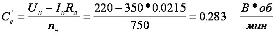 где Се’ — коэффициент пропорциональности между скоростью и ЭДС двигателя.
