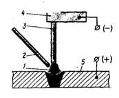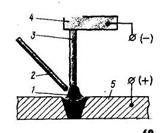 3 — угольный электрод; 4 — держатель; 5 — свариваемый металл.