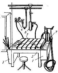 1— ящик для воды, 2 — стол, 3 — ящик для присадочного материала,