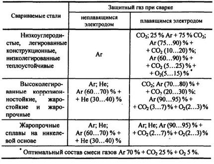 Рис.7. Защитные газы для дуговой сварки сталей и сплавов.