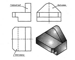 На выданном преподавателем чертеже детали из двух проекций достройте третью проекцию. Для этого прочитайте чертеж, проведите анализ формы детали на имеющихся проекциях.