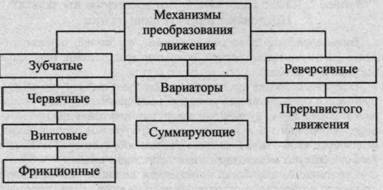 Классификация механизмов преобразования движения, применяемых в станках, приведена ниже.