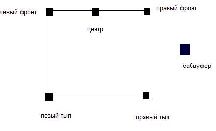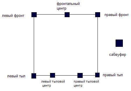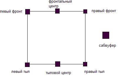 Акустика для домашнего кинотеатра состоит из одного или нескольких сабвуферов, фронтальных и тыловых саттелитов, фронтального центрального динамика, и факультативно одного или двух тыловых центров.