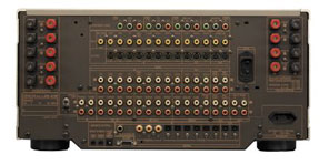 Вид задней стенки A/V ресивера Denon AVC-A1SE (переднюю см. в теоретической части «A/V ресивер»)