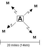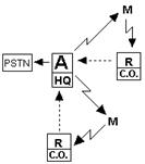 Диаграмма выше показывает центральный передатчик обслуживающий мобильные телефоны на большой территории. Одна антенна обслуживает широкую область, например службу радио такси. Поскольку установленный на автомобиле передатчик не был таким же мощным, как и центральная антенна, то его ответный сигнал не всегда мог быть получен. Это означало, другими словами, что Вам требовались принимающие антенны распределенные на большой территории, чтобы перенаправлять радио поток обратно на узел, обрабатывающий вызов. Этот процесс сохранения линии связи, переходящей от одной зоны к другой был назван handoff.