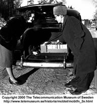 Давайте отправимся в Швецию, чтобы прочитать о типичном радиотелефонном устройстве, похожем на Американские установки: "Это было в середине 1950-х, когда первые оснащенные телефоном автомобили вышли на дорогу. Это было в Стокгольме - здание штаб-квартиры корпорации Ericsson - и первые пользователи были доктором на вызове и банки на колесах. Прибор состоял из преемника, передатчика и логического устройства, установленных в багажник автомобиля, с номеронабирателем и телефонной трубкой зафиксированными на щитке, висящем над обратной стороне переднего сиденья. Это было похоже на разъезды с полной телефонной станцией в автомобиле. Со всеми функциями обычного телефона, телефон питался автомобильной батареей. Ходит слух, что оборудование поглощало так много энергии, что Вы могли сделать только два вызова - Второй, чтобы попросить, чтобы гараж послал грузовик, чтобы отбуксировать прочь Вас, ваш автомобиль и вашу пустую батарею . Эти первые автотелефоны были просто слишком тяжелы и громоздкими - и слишком дороги в использовании - т.е. доступными для горстки клиентов. До середины 1960-х новое оборудование, использующее транзисторы не привозилось на рынок. Весящие много менее и потребляющие ничтожную часть энергии, мобильные телефоны теперь оставляли много места в багажнике - но Вам все еще потребовался бы автомобиль, чтобы передвигаться с ним".