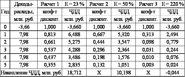 где Е1 и Е2 – норма дисконта, при котором ЧДД является наибольшим и наименьшим значением соответственно.