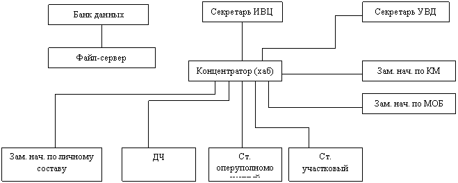 Рисунок 3.1. ЛВС УВД топологии клиент/сервер